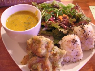 ベジスマイル。 かぼちゃのスープ かぼちゃのスープうまい かぼちゃそのもののうまみ、甘み。 (ってて、かぼちゃじゃなかったらハズイ) 量は少ない。 普通の男には少ない。 でも、スータブルフォー近頃のわたしの胃袋。 ![]() Yass さんにほめられた、大豆ミートのイソベアゲ(仮) 美味しかった。 たまには、こういう刺激も心地好し。 ほんと、よくできてるなーとおもいながら食べる。 ![]() それにしても、いいお店だ。 感覚がマスターに近づきつつあるんだろう。 (お兄さんのこと全然しらないけど) 量より質さ。 MOB47 さん。そんなベジスマにも、 いちど一緒に食べに行きましょうね。 ベジスマのお兄さんと妹さん(仮)ありがとう。(笑) はじめて行った時は険悪ムード漂わせてしまってごめんなさいでした。 いつもありがとう。 ![]() TOP べじたりあん歩奥 |