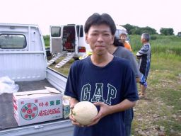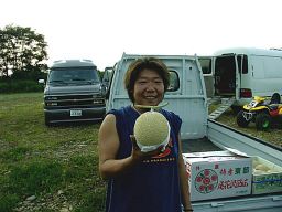 | 見事、じゃんけんに勝った 佐藤さん(左) と 梅津さん(右) 高級マスクメロン GET(σ^_^)σ おめでとうございま〜す |