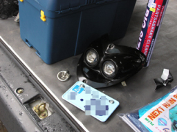 | ↑ ほら、無謀にもONタイヤなの(^^; しかもこのプレート、ボディにガムテで貼るんです ↓ もちろん、リヤタイヤもONのまま |