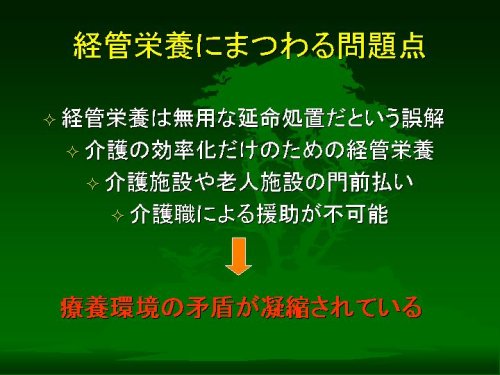 さて、経管栄養に関しては、しばしばいろいろな問題がおこります。…