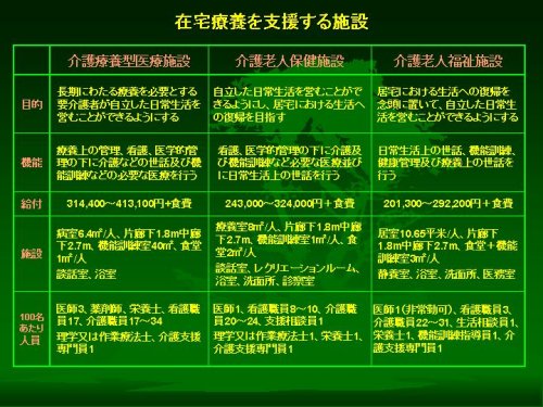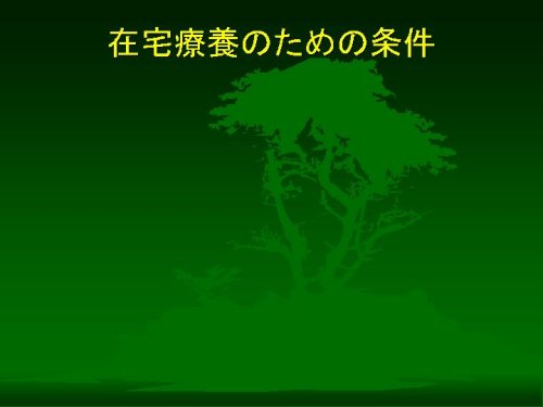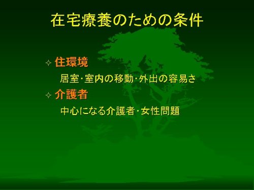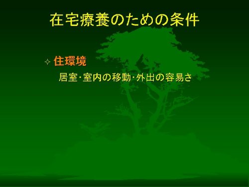 三つ目に在宅療養をサポートする公的私的な制度の整備ぐあいが重要です。