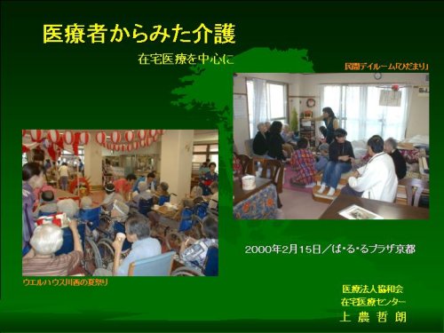 それで、今日の話も「介護」は「在宅介護」「在宅医療」だということで進めてまいりたいと思います。