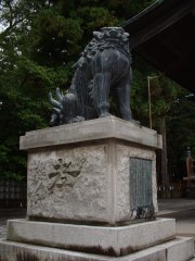 天気が悪くて写真がすこし暗いが、なかなか立派な神社、狛犬さんである。