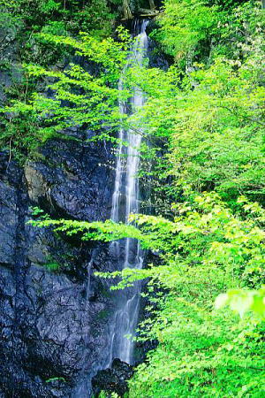 出会いに黒い岩の絶壁に懸かる滝がる。 この滝は鈴鹿スカイラインにより遠望出来る。