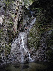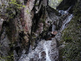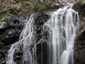 | 世間では梅雨入り宣言された時期であるが、空梅雨気味で殆ど雨は降らない日々である。 長らく続いた超多忙な状況もようやく一段落ついてきたので、実に9カ月ぶりとなる鈴鹿に 出かけて来た。 仕事やら自治会で長らく運動していない身体ではハードな行程は無理である。 しかし、いかにアクセスが容易であろうと「蒼滝」のような観光地は行く気になれない。 そこで思いついたのが雨乞岳の稲ケ谷と鎌ケ岳の松山谷であった。 どちらも滝までの行程が20分程度で無難だし、登山道近くの滝とはいえどちらもマイナー 登山道である為に平日に人が来る可能性は殆どないからである。 さて休暇を取ったとはいえ諸々の雑事で出発は10時前、稲ケ谷登山口到着が11時半とい う遅い出発となってしまった。 先月、使うあても無いのに購入したソールの付け替えが出来る渓流シューズに履き替えて( 但し今日はビブラムのソールを使用)出発する。 稲ケ谷大滝まで15分の行程ではあるが、運動不足の我が身には久し振りの山歩きがチト辛く 感じられる。 途中の水木谷の滝で休憩しようかとも思うが、それはあまりに情けないので水木谷の滝は帰り に寄る事にして先を急ぐ。 湿度が高い事も手伝って、ここ数年でめっきり汗かきになった身体は稲ケ谷大滝にたどり着く 頃には、頭から水でもかぶったような状態に成り果てていたのであった。 予想通り、滝には誰もいない(当たり前だが・・・)。 しかも水量はなかなかのものである。 6年前に山に行き始めた頃に訪れた時には渇水期だっ たし、本日も鈴鹿スカイラインで伊勢側の東西の多古地谷が涸れ谷同然だった事を思えば、 予想外に多い水量といえる。 息を整えコンビニで調達した食料で昼食を採りながら、久し振りの滝前での一時を満喫する。 撮影も含めて1時間以上を滝前で過ごし、水木谷の滝へと戻るのであった。 さて、登山道を5分程戻り水木谷の滝へ到着する。 水木谷とはいうものの実際は稲ケ谷の滝 であり、水木谷ってどこ?と取り止めも無い疑問を抱きながら、しばしの撮影タイムとなる。 上段の滝は容易に近くまで寄れるが下段の滝はミニゴルジュの奥にある為、水の中をジャブジ ャブしながら近くまで行く。 でも三脚を立てるスペースが無く、撮影もそこそこに切り上げ 登山口まで戻ったのであった。 時計は既に2時近い。 時間を気にしながら松山谷に向かう。 ニゴリ谷登山口の取り付きを 探すのに若干手間取ったものの、そこからは比較的順調に道を拾いながら松山谷出合いまで1 5分程でたどり着いた。 出合いの水量はとても少ない。 野洲川支流のニゴリ谷、更にその支流にあたる訳だから少な くてあたりまえなのだが・・・。 若干の不安を抱きながら5分程進むと、沢が大きく左に曲がって大滝の予感が・・・。 さっきまでの不安はどこへやら、ワクワクしながら屈曲点までたどり着くと大滝の姿が視界に 飛び込んで来た。 「鈴鹿の山と谷」の記述どおり落差は20m近くあるだろう。 右に左に稲妻状に落ちる4段の滝であった。 率直に言えば好みの滝だが・・・、やはり水量 は少なかった。 伊勢側の谷の事を思えば多い方なのだが、稲ケ谷大滝を見た後なのでどうし ても比較してしまう。 しばし休憩の後、撮影タイムにするが(下手くそな事も手伝って)写 真にしにくい滝であった。 水量の事もあってなおさらそう感じるのだろう。 左岸側に支流 がありこちらも20m程の滝となっていた(濡れている程度だけど・・・)。 左岸の支流にそれなりの水量が期待できる時にまた訪れたいものである。 記録によれば、この滝の上にも落差10m以上の滝があるらしい。 試しに左岸側が巻けそうだったので行けるとこまで行ってはみたが、左岸支流を越えたあたり でこれ以上進むと戻れなくなると判断して打ち切りとした。 いつかは遡行してみたいものだが、時間と体調を考えると今日の滝行きはここで打ち切るべき であろう。 稲ケ谷登山口まで戻ると、時間は既に4時近い。 久し振りの鈴鹿、久し振りの滝を満喫出来た事を感謝しながら、我が家への帰路に着くのであ った。 |