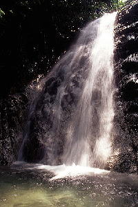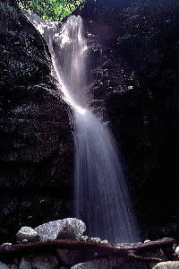 | 天狗谷は「鈴鹿の山と谷3」を購入して以来、龍ケ岳周辺での行ってみたい谷ナンバー1であった。 以前から事ある毎に人を誘ってみたり、計画を立ててみたりしたが、結局は行けず終いの日々であった。 そこで今回は意を決して単独で行けるところまで行ってみようお試みた次第である。 Webで検索してみても天狗谷に関する情報は皆無といえる状況で、参考になるのは「鈴鹿の山と谷3」の記述のみである。 加えて技術レベルの低い自分としては決して無理は出来ないし、ましてやカメラやらを抱えてでは尚更である。 極力、無理はせず高巻きにしても直登にしても戻れないと判断される滝が現れたら引き返す事にして、天狗谷行きを決行してのであった。 さて当日、例によって遅い出発で石榑峠手前の雲向橋付近の駐車スペースに到着したのは11時過ぎだった。 装備一式を整え、食料・撮影機材を詰め込んで、天狗谷に取りついたのは11時半過ぎであった。 雲向橋より左岸の巻き道を登り最初の堰堤を越える。 右方向にどこに通じるのかわからない踏み跡を分けると直に小規模な枝沢に出会う。 巻き道は枝沢を越えて続くようだが、途中で不明瞭になったので枝沢より本流に降りるとすぐにF1である。 逆光気味でまともな写真が撮れるかあやうい状況であったが、暫くの撮影と昼食をタイムとする。 滝そのものはそれほど落差は無いが岩がオーバーハング気味で、登れたとしても降りるのは難しそうだ。 左岸側から巻けそうだが「行きはよいよい帰りは怖い」的な自分レベルでは登ったら降りられなさそうな岩場 になっている。 ならば少々大高巻きになってもいいからと左岸の斜面でルートを模索するものの、上手くなさそうである。 F1で敗退かと諦めかけるが、最後の足掻きで岩場を越えて登ってみると、何となく道のように見えるところがあるではないか。 木の根や枝を掴み強引にそこまで体を引きずり上げてみると、おっとびっくり、薄れかけてはいるが立派な道があるではないか! 少し戻って偵察してみると、先程の枝沢を道が横切る上流に出る事が判明した。 帰りの道も確保されたし、この踏み跡をもう少したどってみることにする。 最近は通る人もいないのかかなり薄れかけているし、崩壊で一部で途切れたりするが、何とか道を拾いながら進んでいくと、次第に沢に向かって下降していく。 道が消えた地点からほんの少しでF2に出くわしたのであった。 F2は落差4m程でF1よりさらに規模は小さいが岩の出っ張りに水が落下して飛沫がかなり飛んでくる。 涼しくて休憩にはいいのだが、すぐにレンズが飛沫で濡れるので程々で切り上げる事にする。 右岸を楽に巻いて行くと、程なくF3に到着するが・・・。 滝の一部に陽があたっておりコントラストが非常に強い・・・。 滝としては形の良い斜瀑で好みなのだが、上手く写真になるかは危うい状況である。 ゆっくりしたいところではあるが、本日の目標であるF4到達を優先して早めに切り上げる。 さて、文献では直登出来そうな事が書いてあるのだが、本日は来た道を引き返す必要がある。 そういう観点で見るとF3も巻いた方が賢明のようである。 左岸側は壁で巻けそうにない。 右岸側は灌木が結構生えているが、斜面が急でつらそうである。 結局、手前の枝沢から巻く事にするが、枝沢を登ってもトラバース出来る程に斜度が落ちてこない。 仕方がないのでもう少し枝沢を登り、小尾根を乗り越してみると沢からかなり離れてしまっている。 相変わらずの急斜面を滑り落ちかけるのを、だましだまし何とか下る事に成功する。 帰りが心配だが何とかなるでしょう(事実なんとかなりました・・・)。 ゴーロを少し進むと、本日の目標である落差20mのF4に到着である。 何故F4に来たかったというと20mという落差に惹かれた事もあるが、「鈴鹿の山と谷3」の本文には「Y字型の豪放 な滝」とあるが、同書の遡行図には「白布をかけたような美しい滝」とある。 どちらが正しい記述なのか知りたかった為でもある。 結果は写真の通りであるが、もう少し水量が多い時には豪放な滝となるのかもしれない。 更に上流も気になったが、目標も達成出来たし、時間的にも午後2時を過ぎており、予定通りF4を終了点とした。 1時間程、静寂の楽園気分を満喫し、来た道を国道へ向けて戻って行ったのであった。 今回の行程は天狗谷の中流部に差しかかったところで終了した為、いわゆる「雲間の滝」と思われる滝までは到達 出来なかったが、次回は万全の体制で源流まで詰めたいものである。 |