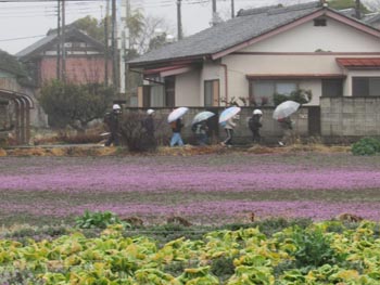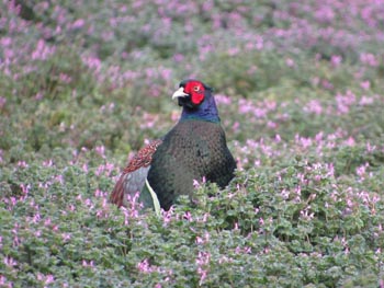 動物も植物も動きが活発に。 3月4日(水) 紫の絨毯のようなホトケノザの中に雉はいました。散歩する人たちは、彼らの姿にそーと通りすぎていきました。「元気でしたか」と声をかけたのかも知れません。
