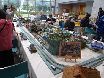 この文化祭は笠懸公民館を主な活動場所とするサークルや各種団体の日頃の活動を発表する場所となっていて、公民館の館内では笠懸地域の小・中学校の児童・生徒の作品展示を始め、ドライフラワーやブリザードフラワー、レザークラフトなどの作品展示のほか、囲碁や将棋、切り絵、手話の体験などバラエティーに富んでいます。また、1階ロビーに展示された鉄道模型のジオラマでは、みどり市周辺の建物などが配置されている中を走る車両に多くの注目が集まっていました。