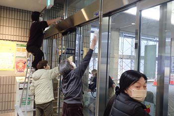 大掃除に取りかかるに際して利用者の会からは、「公民館はつどう・まなぶ・むすぶの3つを大切にしていて、大掃除は掃除をすることの他に仲間作りをすることが目的で、それがむすぶことになります」「自分たちが担当する部屋の掃除が終わったら他の部屋のお手伝いをお願いします」との説明がありました。このこともあってか、早く掃除が終わったらさっさと帰路につく姿は見られず、協力し合いながらおよそ1時間の清掃作業が終わりました。