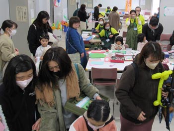 受付は、事務室前にありました。入口の外まで順番を待つ列が続き、どのコーナーも子ども連れの家族などでいっぱいでした。