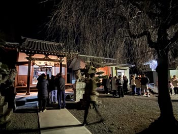 | 日付が変わると多くの初詣客が訪れました(百品神社) | 参拝者には甘酒が振る舞われました(浅海八幡宮) |