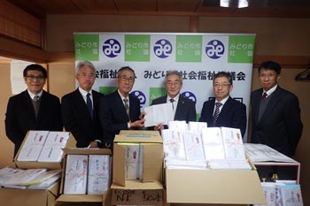 群馬県宅地建物取引業協会桐生支部(新井栄支部長)の役員らが1月16日(金)にみどり市社会福祉協議会(石田義彦会長)を訪れ、タオル500本を寄贈しました。