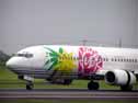 スポットにいたときは翼が邪魔で見えなかったのですが、プッシュバックして機体がだんだん横を向いてくると、なんと“Air Japan”のロゴが見えてきました。こういう、意外な機体がひょっこり来ると、嬉しくなってきますね!