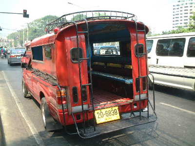 このソンテオがやたらと街を走り回っている。歩いているとソンテオがクラクションを鳴らして、乗らないかと誘ってくるので、自分の行先を告げOKであれば乗り込めばよい。料金は近場だと20〜30バーツくらい。