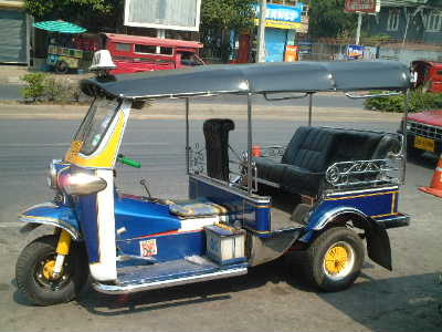 その次はトゥクトゥク。バイク(?)の後部に座席を付けたもの。走るときのエンジン音がトゥクトゥクトゥクトゥクと聞こえるので、この名前が付いた。(らしい)