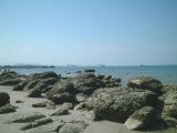 ホアヒンの海で特徴的なのは、海岸に大きな岩がごろごろとしているところ。ホアヒンというのはタイ語で、「石の頭」という意味だとか。