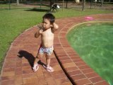 今回彼が一番楽しんだと思われるのはプールだった。ゴールドコーストでもサンシャインコーストでもプール付きの宿だったので、大いに楽しんでいた。天候不順でかなり気温が低かったが、プールに入りたいとおばあちゃんにせがんで、大喜びで遊んでいた。