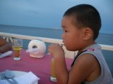 息子も海上に浮かぶレストランに最初だけは大喜びである。(すぐに飽きてしまう。)