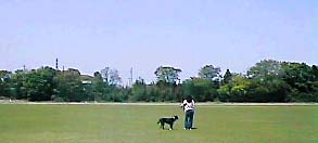 犬を散歩させるにも適。これだけ広いと気持ちいい