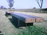 | 1本型:upやはり丸太を半分にばさっと切ったイメージで作られているのか、ベンチの脚もすぱっと切った形である。 左:智光山、右:彩の森入間 |