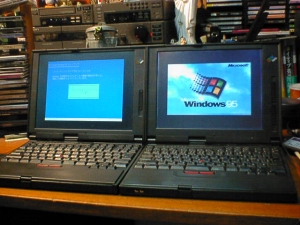 スペーサー先日友人のLibrettoのHD換装用にIBMの810MBのHDDを購入したが、これには12.5mmの空間にもあわせられるように黒いスペーサーがついていた。さっそくこいつを有効利用。これで上記の問題は一件落着。 |