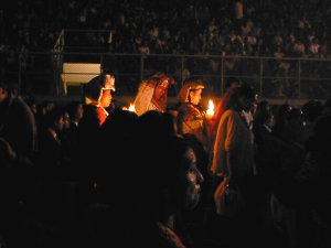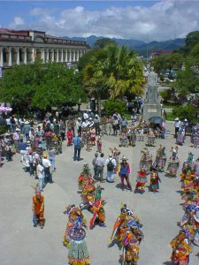 | ラビン・アハウ騒動 インディヘナの女王を決めるお祭り、ラビン・アハウ開催日。昼間は任国外研修でコバンに来ているコスタリカやドミニカ共和国の隊員たちや近くの町に住む隊員たちと、広場の露天で買い物をしたり、伝統芸能を見物したりしていた。ラビン・アハウそのものは夜の8時から始まる。入場料は50Qだから、決して安くはない。地元の人はテレビで見た方がいいという。 6時から会場に行って席を確保しないといい場所はとれないと聞いていたが、結局ついたのは7時。あんのじょうステージがちょっと遠い。まあいいや。 それぞれの地域から選ばれた候補者が次々と登場し、ちょっとしたパフォーマンスをしてから、ひな壇に座っていく。今年からは時間がかかるとの理由で、演説とその審査は昨日のうちに別の会場で行われたらしい。それでも一人一人登場していくだけでかなりの時間がかかってしまった。 インディヘナの伝統芸能を、おそらくはどこかの劇団だと思うが、多少現代風にアレンジした踊りなどをあいだに挟みながら、プログラムは進行していく。 候補者が10人ほどに絞られた後、日本大使館の後援による「着物ショー」が行われた。この時点で最初に聞いていた時間より3時間ほど遅れている。午後9時ごろと聞いていたのに、すでに時計の針は12時に近い。長時間着物を着たままのモデルさんたちに同情する。ちなみに半分くらいは協力隊女性隊員たちである。 着物ショーそのものはよかったけれど、それがよいものであればあるほど、違和感を感じてしまうのは僕だけだろうか。インディヘナの女王を選ぶ祭りにどうして着物ショーなんだ?この種の外交的戦略からくる押しつけがましさを僕はあまり好まない。「日本文化」の押し売りのような気がしてしまう。隊員レベルの日本文化紹介程度ならともかく、完成度が高ければ高いほど、文化交流とはほどとおくなり、外交的宣伝合戦にいやおうなしに巻き込まれていくような気がしてしまうのだ。着付けをほどかなければならないモデルや先生はともかく、着物ショーが終わると同時にホテルに帰ってしまう大使館関係者もあまり好まない。失礼ではないのだろうか。夜も遅いからしかたのないことかもしれないが。 候補者の選定は、審査員の質問に対する答えの内容と話し方などで評価される。他にも評価基準はあるのかもしれないがよくは知らない。質問の内容はなかなか厳しいものだった。たとえば、「和平合意はインディヘナに何をもたらしたか」、「環境問題について、改善のための具体的な行動はどのようなものがあるか」など。 しかしながら候補者たちの答えを聞いていると、どうも真っ向から向き合うような答えはなく、与えられた質問を一つの題目として、いかにに美辞麗句を並べ、気の利いたことが言えるかが問題になっている気がした。グァテマラ人のインテリ層と話すといつも感じるのが、このことである。もっと真剣に考えようよ、などと僕なんかは思ってしまう。もっともまじめに答えようとすると収拾のつかなくなりそうな質問ばかりだったけれど。 最終的に候補者が3人に絞られたあとで、問題は起きた。 候補者の出身地はそれぞれ、コロテナンゴ(ウェウェテナンゴ県)、サンタ・クルス・デル・キチェ(キチェ県)、トゥクル(アルタベラパス県)の三カ所。僕の見たところ、コロテナンゴの娘は身振り手振りは激しく、話し方も過剰で、なにかの政治的アジテーションを聞いているかのようだったし、トゥクルの娘は話にあまり内容がなかったしで、キチェの娘が妥当な線だと思っていた。けれども、実際に発表されたのはコロテナンゴであった。グァテマラではああいうのが好まれるのかなあと思っていたら、会場のあちこちからブーイングがわき起こった。単に自分の属する地域が選ばれなかったことからくるのかと思ったら、審査員が出てきて、発表が間違いだったという。実際はキチェだというのだ。しかしながら選ばれたコロテナンゴはすでに選ばれたことに対する感謝と今後の抱負の演説を、あいかわらず激しい身振りを交えながら語ったあとで、それを見かねたのかキチェの娘は辞退してしまった。それじゃというので、審査員はトゥクルを指名したけれど、観客がそれで納得するはずもなく、会場全体がなんだか不穏な空気に包まれ始めた。 これはいわゆる三十六計逃げるに如かずというやつだなとばかり、一緒に見ていた他の隊員に声をかけて退散することにした。だから結局どうなったのかはわからない。 次の日の新聞によれば結局女王はまだ決まっていないとのことだった。 |