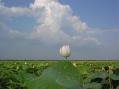 | カンボジアの聖地のひとつプノンクロム(クロムの丘)の周辺には蓮畑が広がっている。見渡す限りの蓮畑である。 そこにぽっかりとうかんだ入道雲が僕のお気に入りの風景の一つだった。