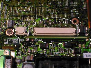 | 4-2a コネクタの左右にはつまみのようなものが付いている。はずす際には、これを手前に引き出してから、フレキシブル・ケーブルをはずす。 | ![]() |
