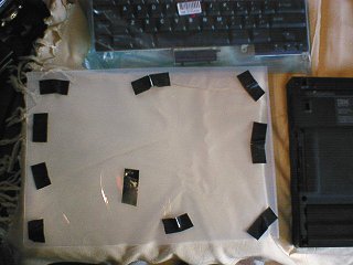 | 注意! 必ず右図のように、はずしたネジがどこの場所にあったかわかるようにしておくこと。ネジの長さは場所によって違います。 ここではA4の透明ファイルにビニテで仮止めしています。 |