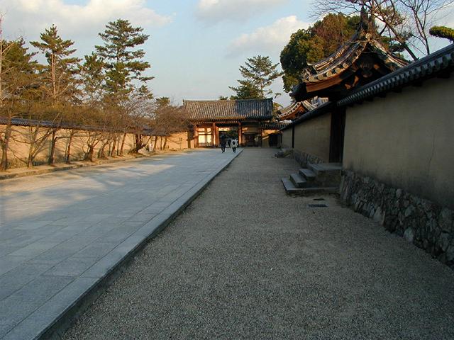 東院伽藍への道です。見えているのは東大門です。