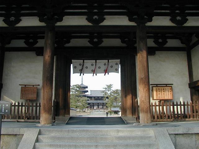南大門から、中門と五重塔が見えます。