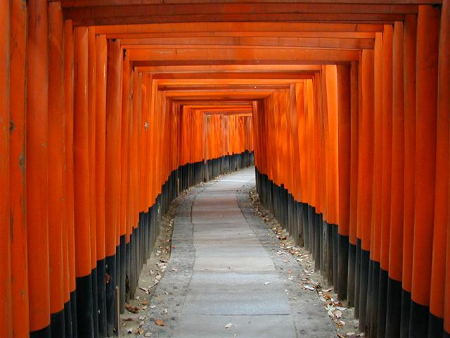 奥社への鳥居の道です。昼でも、薄暗く、手ぶれ注意です。