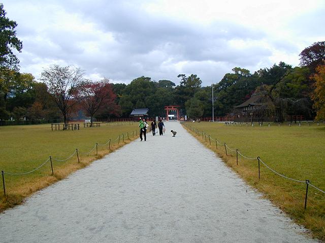 社殿まで、広い神域があります。下鴨神社では森ですが、こちらは現在こんな空間です。