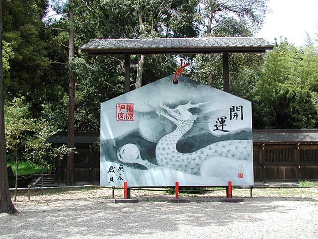 大きな絵馬です。以前は、1年中、外拝殿の左にあったのですが、最近は北神門近くにあります。