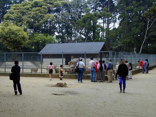 鹿園です。鹿せんべいではなく、ニンジンをそばの売店で購入して与えます。