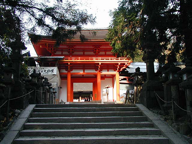 楼門の中に、拝殿がわずかに見れます。