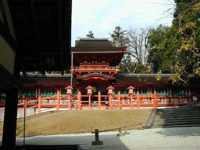 見えている建物の奥に、4つの社殿があります。春日大社には、4柱の神様が祀られています。