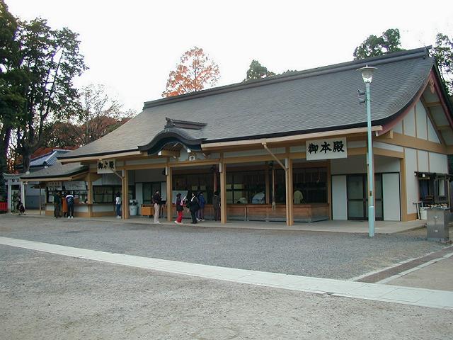 本殿が参拝可能になりました。古い写真です。仮殿を少し横から、見ています。
