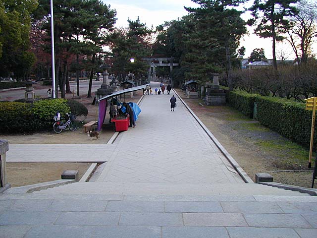 門を出ます。左手方向に、豊臣秀吉の北野大茶会の跡碑や井戸があります。(この写真では、見えません)