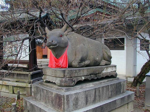 境内には、牛の石像がたくさん寄進されています。門を入って、すぐの牛です。