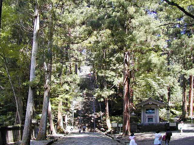 中央の石段が菩提梯です。段差が大きく、登るのが大変です。写真右手に女坂というゆるい坂があります。