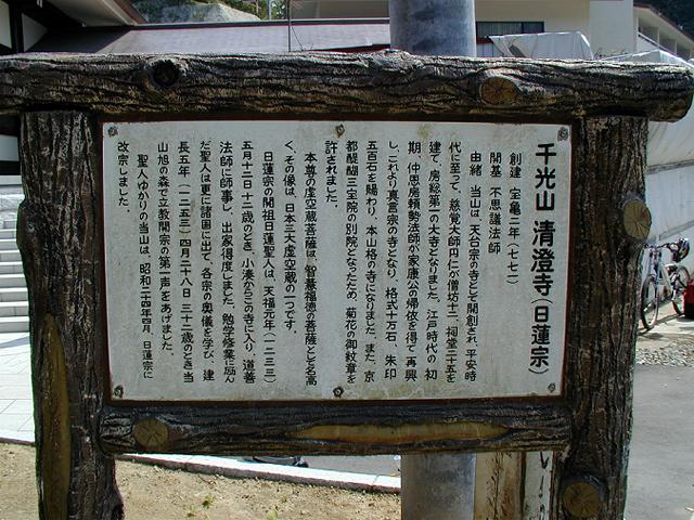 三門前の案内板です。天台宗→真言宗→日蓮宗へと変遷がわかります。