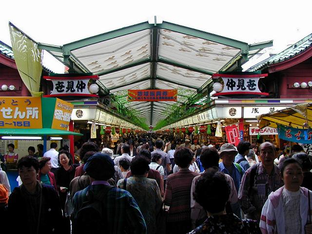 仲見世という門前です。いろいろなおみやげ物が買えます。