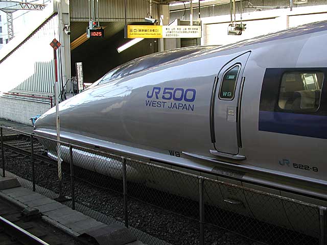 新幹線500系。ホーム一杯に停車しているのがわかるかな。