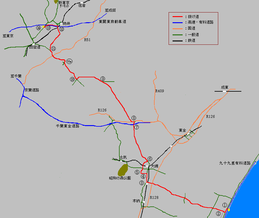 帰りは京葉道路との合流(千葉東JCT)で混むので空いていると思っても東金道には乗らない方がベター