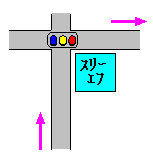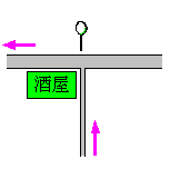 突き当りを左折 (一部すれ違いが困難なため注意)
