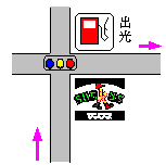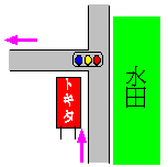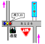 国道51号線を横断し、緩い左カーブコスモ石油を右折 (その先カーブ多し注意)