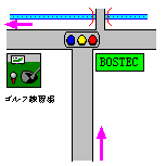 JRの高架下をぬけ、不動産屋(BOSTEC)横の交差点を左折