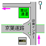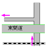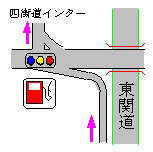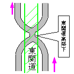 東関東自動車道の高架下のX字路を左側へ抜ける