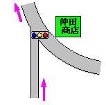 踏み切りを渡り、高速の下をくぐり抜け、直ぐ左折